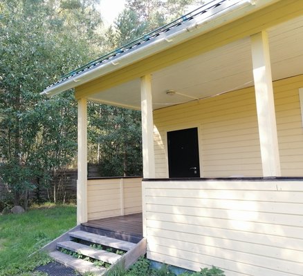 Каждый дом оснащен всеми удобствами и представляет собой круглогодичное жилье, внутренняя и наружная отделка выполнены из натурального дерева, а высота потолков составляет 2,7 метра. В каждом доме есть гостиная, объединенная с кухней, две спальни, санузел, душ и большая веранда. Дом идеально подходит для семейного отдыха и рыбалки и рассчитан на проживание четырех человек, при необходимости для детей в доме предусмотрено два дополнительных спальных места.