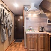 Поесть можно в ближайших кофейнях или ресторанах. Также есть много точек быстрого питания, супермаркетов и магазинов. Каждый номер укомплектован посудой и бытовой техникой.