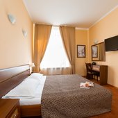 К размещению гостей предоставлены комфортные и уютные номера с большими окнами. Все они оформлены в классическом стиле и оборудованы удобными кроватями, качественной мебелью и современной техникой, в собственной ванной комнате есть фен.