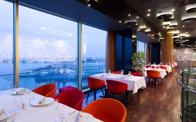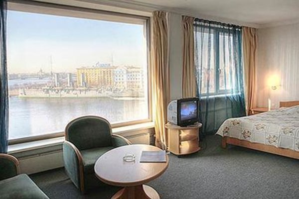 Отель расположен на берегу Невы с видом на легендарный крейсер «Аврора». Из большинства номеров открывается панорамный вид на центр города и акваторию Невы.