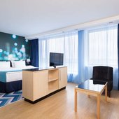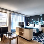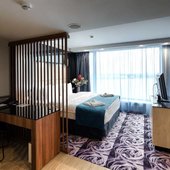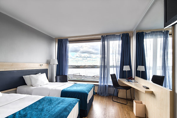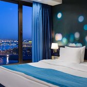 Однажды довелось мне отдыхать в этой гостинице. Впечатления остались смешанные. Сама гостиница выглядит эффектно, очень красивые виды, панорамные окна, прямо из которых можно увидеть как разводят мосты. Но что касается сервиса, тут уже минус. Персонал не очень вежлив. Комнаты не очень чистые, в ванной был сломан душ. За такую цену ожидали большего. Не очень