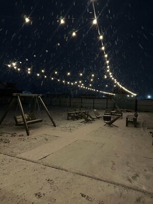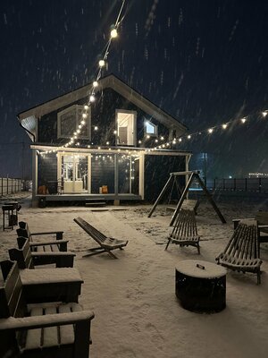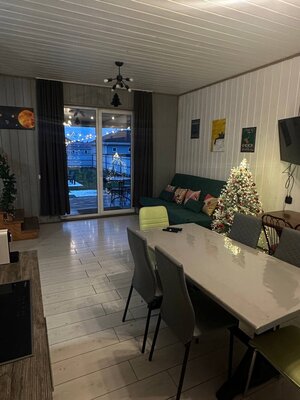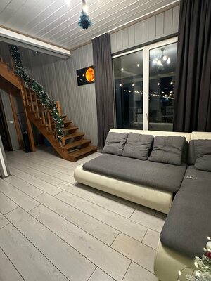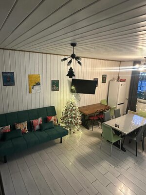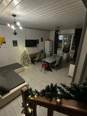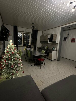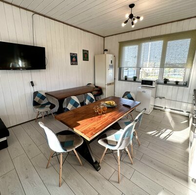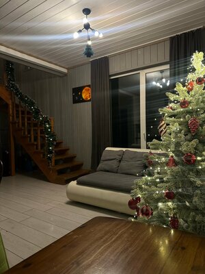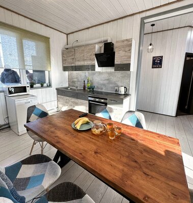 В коттедже есть все необходимое для удобного проживания: современный телевизор с доступом к стриминговым сервисам, высокоскоростной интернет и полностью оборудованная кухня с духовкой, варочной панелью, посудомоечной машиной и кофемашиной. Открытая терраса с зоной барбекю идеально подходит для отдыха на свежем воздухе.