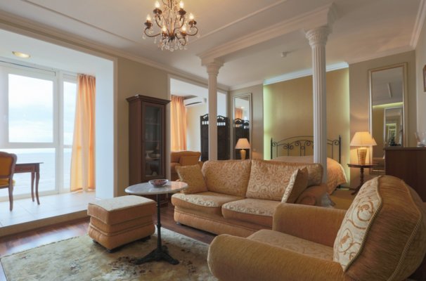 Для размещения участников корпоративных мероприятий и групповых заездов предлагаются номера 6-ти категорий комфортностив 10-этажном главном корпусе санатория.