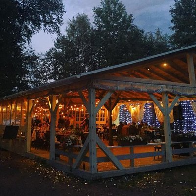 - для небольших свадеб, помимо ресторана, также предлагается организация праздничного стола в гостиной или на террасе одного из коттеджей (до 20 гостей);