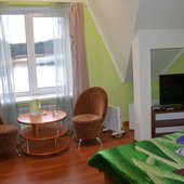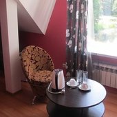 Рядом хвойный лес, родники, пляжи, река и озера. Можно взять лодку напрокат. Нам предоставили обогревательный прибор (в номере было холодно), большое спасибо за это. Кулер с водой находится в главном корпусе, можно брать воду для питья оттуда. Номер чистый и красивый, в апартаментах уютно, никто не мешает. Можно взять бадминтон для игры.