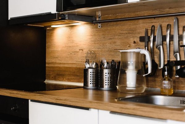 Кухня полностью оборудована всем необходимым для самостоятельного приготовления еды.