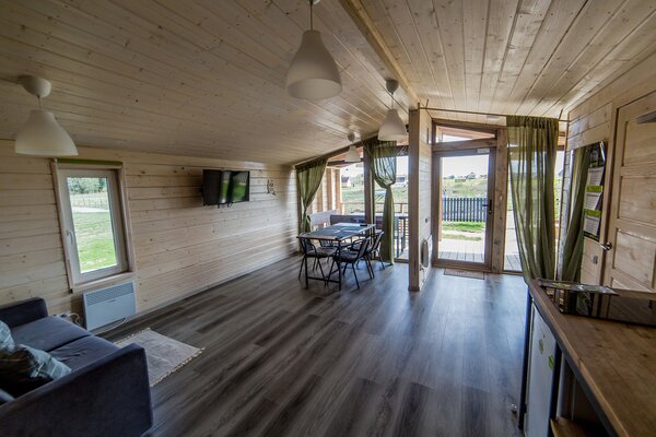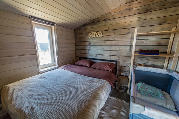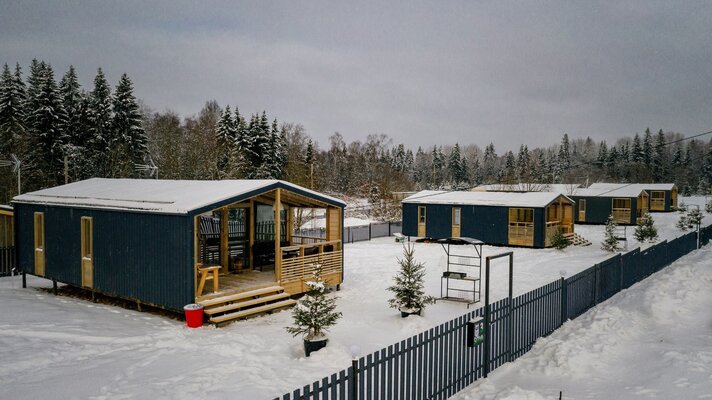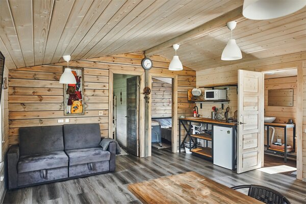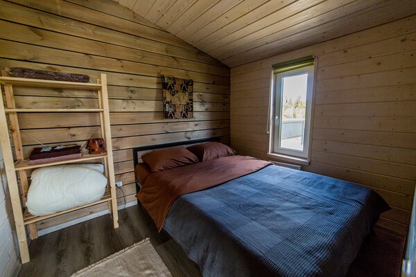 Каждый комфортабельный коттедж рассчитан на размещение до шести человек. Внутри вы найдете две спальни с двуспальными кроватями, кухню-гостиную с панорамными окнами, раскладной диван для двоих в гостиной, а также ванную комнату с душем. Все удобства уже предоставлены, включая бытовую технику, посуду и столовые приборы, обеспечивая максимальный комфорт. Коттеджи оснащены современными электронными кодовыми замками для удобства заезда.