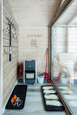 В бане выделена зона для парения с печью каменкой и зона отдыха со столом и скамейками. Уютная открытая терраса позволит завершить отдых с чашкой вкусного чая.
