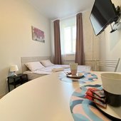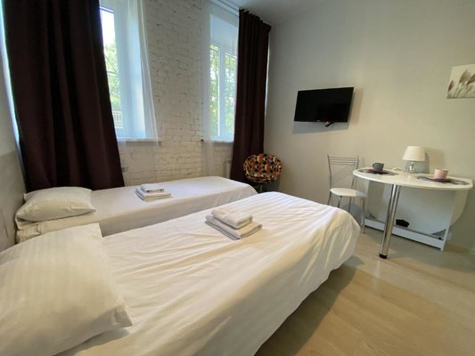 Для размещения подготовлены светлые номера, в каждом из которых имеется функциональная мебель, современный телевизор, собственная ванная комната, гигиенические принадлежности. Для чистоты ежедневно осуществляется качественная уборка.