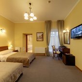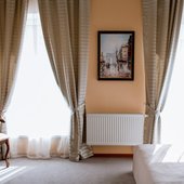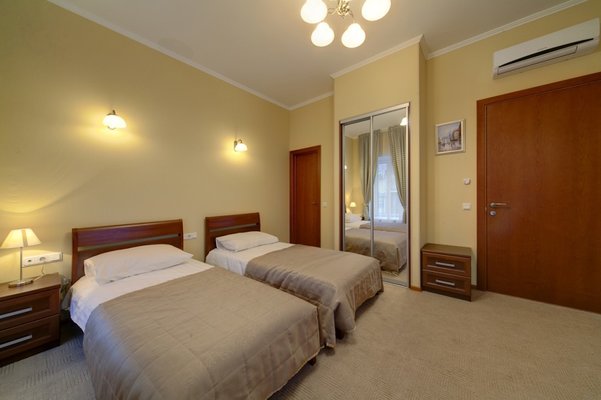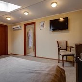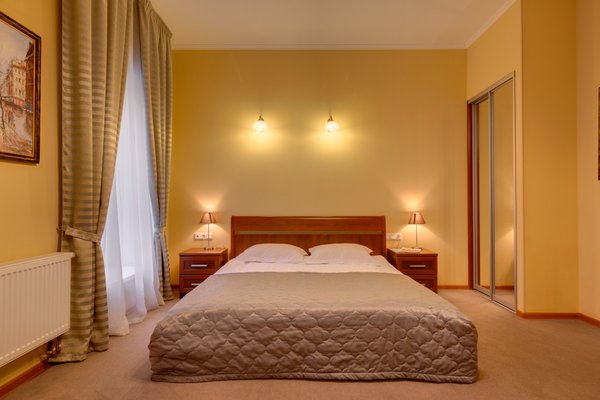 Интерьер номеров выполнен в классическом стиле и светлых тонах, что позволяет проживающим почувствовать уютную атмосферу при размещении. Все комнаты оснащены современной мебелью и техникой. Ванная комната укомплектована всем необходимым. Из окон открывается живописный вид на город.