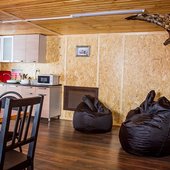Снимали большой вместительный дом для празднования дня рождения. Во дворике есть наш персональный мангал, предоставляют шампура. В доме были тапочки, полотенца, постельное бельё, посуда, есть микроволновка, холодильник, телевизор (без смарт ТВ), ди-ви-ди, правда старенький, но подключён к хорошей аудиосистеме со знатными басами, так что берите флешку с музыкой (ну не возьмёте же вы диски, кто вообще ими пользуется). На территории баня, контактный зоопарк, лошадки. Баня - это прям отдельный дом со всем необходимым, можно купить веник за 200-250 рублей. В бане выход в пруд - там была прорублена прорубь. Было отлично! Нас дружелюбно встретили, проводили до дома, отвечали на наши вопросы, запросы, даже объяснили в час ночи, где найти бельё для дивана)