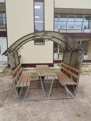 Холодильник, микровалновая печь, чайник, обеденный стол.