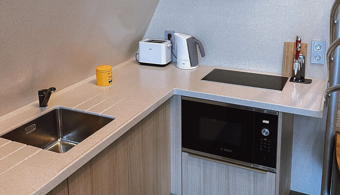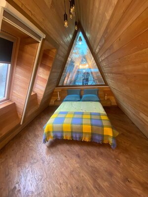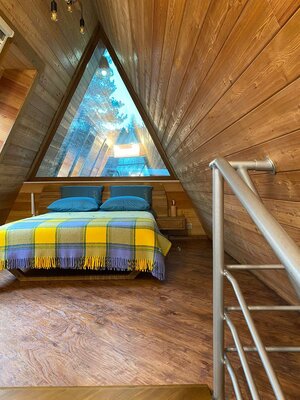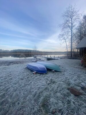 Прогулки по берегу озера, рыбалка, катание на лодке, свежий воздух и тишина – всё это ждёт вас! В самом коттедже – две спальни с двуспальными кроватями, гостиная с диваном, полностью оборудованная кухня, санузел с тёплым полом и уютный камин. Wi-Fi обеспечит связь с миром.