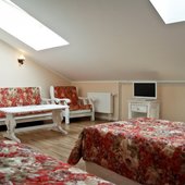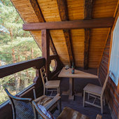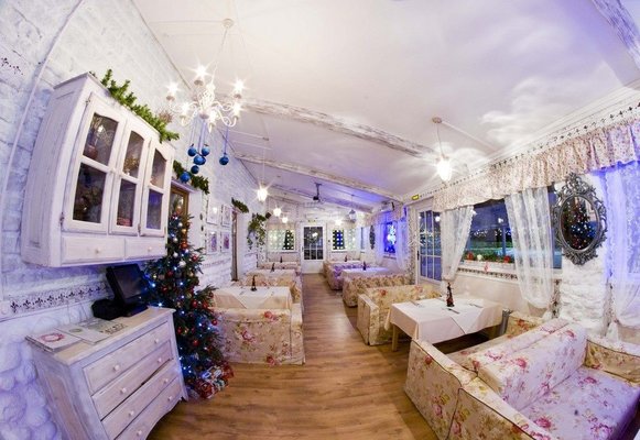 Магия уютного помещения – просторного и камерного одновременно, наполненного струящимся светом, декорированного просто и изысканно – окутывает каждого вошедшего. Хочется утонуть в мягких диванах под картинами Владимира Велегова или устроиться рядом с настоящим, «живым» очагом в центре зала, а можно выбрать место на летней веранде, любуясь колоритным пейзажем и вдыхая запах соснового леса, смешанного с ароматом морского прибоя.