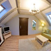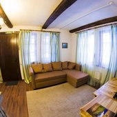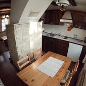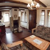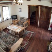 На первом этаже расположены два зала. Первый зал на 24 посадочных места (35 при банкетном размещении) декорирован в стиле старинной корчмы, второй зал на 14 мест за круглым столом (мельничные жернова). На втором этаже располагается третий зал (круглый) на 16 посадочных мест.