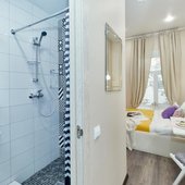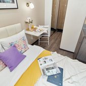 Светлые номера, выполнены в едином стиле с яркими цветовыми вставками. Обновленный интерьер подобран с целью создания домашнего тепла и уюта. В числе удобств: современные телевизоры, собственная ванная комната. Санузел включает в себя сантехническое оборудование.