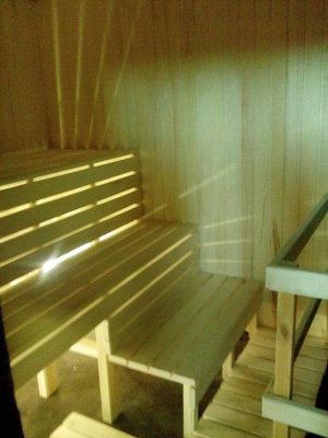 В распоряжении гостей просторная парная, бассейн и уютная зона для расслабления со столом и скамейками, а также необходимые принадлежности — полотенца, простыни и мыло для рук.