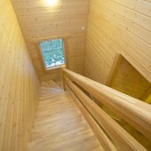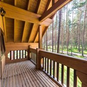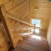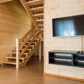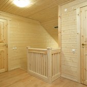 Двухэтажный коттедж из клееного бруса, рассчитанный на проживание 8 человек.
