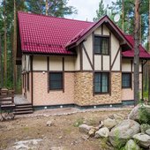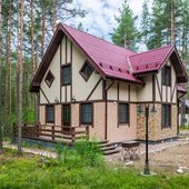 Двухэтажный коттедж из клееного бруса, рассчитанный на проживание 6 человек.