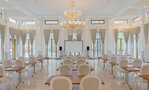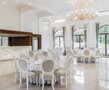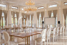 Легкий и прозрачный, с панорамными окнами и высоким потолком, сочетает в себе атмосферу дворцовой оранжереи и динамичность современного многофункционального пространства. Не случайно выбран белый цвет в оформлении интерьера зала, он позволяет легко трансформировать существующее пространство под любые мероприятия.