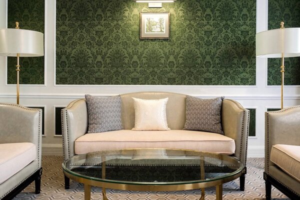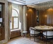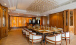 Элегантная сдержанность ореховых панелей, глубокие удобные кресла и диваны, спокойные тона интерьера, дизайнерская роскошь освещения органично сочетаются с продуманностью европейского меню и современной подачей блюд.