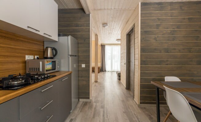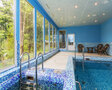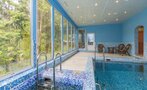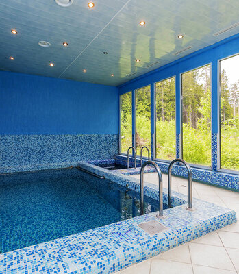 В спа-комплексе имеется комната отдыха с удобным диваном, столом и креслами, большой телевизор, дровяной камин, вместительная сауна на 10 человек, крытый бассейн 3x5м с подсветкой и противотоком, купель с холодной водой, 2 душевые, раздевалка, санузел.