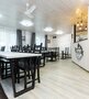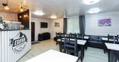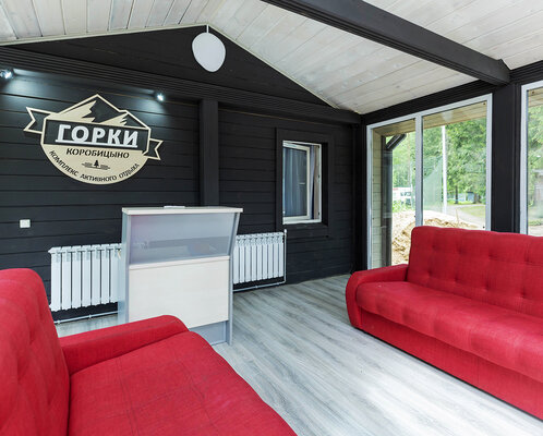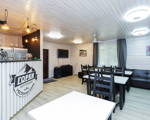 На территории комплекса Горки находится уютное кафе с залом площадью 70 кв.м., Кафе отлично подходит для организации банкетов как с обслуживанием, так и без. В помещении имеется вся необходимая кухонная техника, а также аудио-видео-техника в т.ч. караоке, санузел, большая веранда.