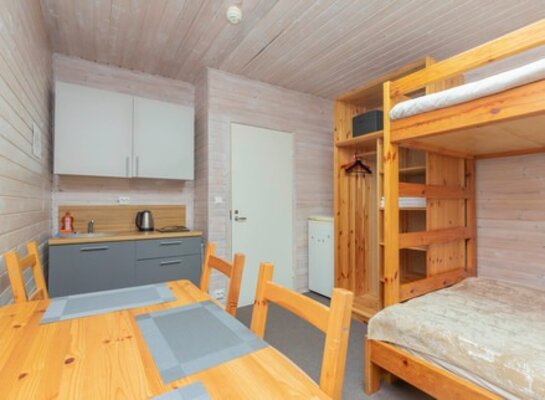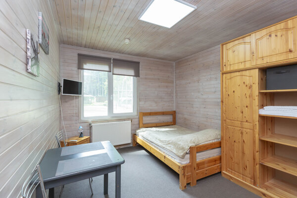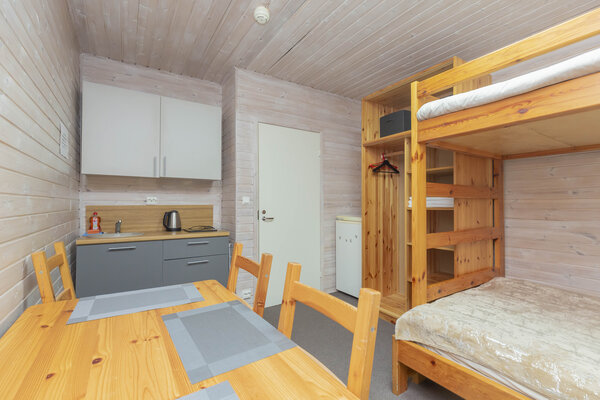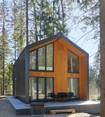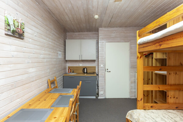 Модульная баня это отличный выбор для компании до 4 человек. Площадь 13 кв.м, 3 помещения (парилка, помывочная, комната отдыха). Дровяная печка обеспечит качественный пар. В комнате отдыха имеются лавки и стол, в парилке – полати.