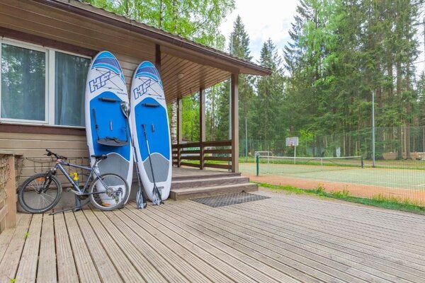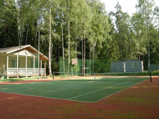 На территории базы отдыха Горки имеется освещаемый теннисный корт с искусственным покрытием. Спортивный инвентарь для большого тенниса можно взять в аренду.