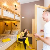 Просторные номера, выполненные в светлых тонах, обустроены всеми удобствами для комфортного проживания и полноценного размещения постояльцев. В них есть: двухъярусные кровати, общая ванная комната, запирающиеся шкафчики.