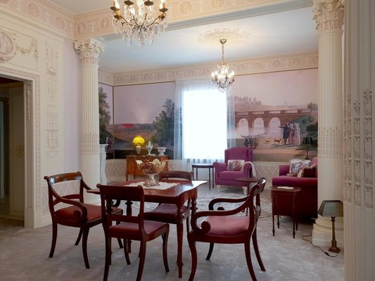 В Марьино вас ждет комфорт и роскошь: номер с видом на английский парк, курданер, каскад прудов и каменные мостики. Интерьеры наполнены духом истории: художественные произведения XIX-XX веков, фарфор и бронза, шелковые ткани и гобелены, антикварная мебель создают неповторимую атмосферу.