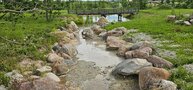 Днём лошади пасутся на лугу возле леса. На водопой они спускаются в овраг, по дну которого бежит ручей, неподалёку впадающий в Тосну.