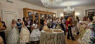 Прокат исторических костюмов, среди которых женские бальные платья, мужские камзолы и шляпы, детские наряды, аксессуары.