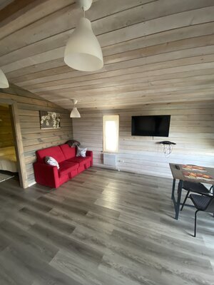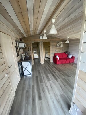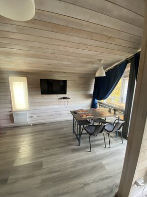В «Извара Парк» погрузитесь в атмосферу скандинавского стиля в уютном коттедже. Вас ждут две светлые спальни с удобными двуспальными кроватями и просторная кухня-гостиная с раскладным диваном, создающим идеальное место для отдыха с близкими.