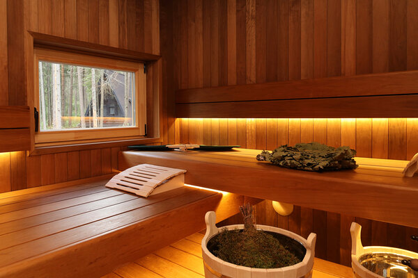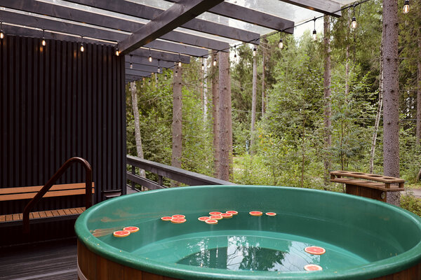 Банный комплекс загородного отеля VIEW GA Wild Forest объединяет традиционное парение при помощи печи SANGENS с мягким паром, издающим звук вьюги. Здесь предоставляется все необходимое: шапки, полотенца, халаты, килты, тапочки, шампунь, бальзам для волос, гель для душа.