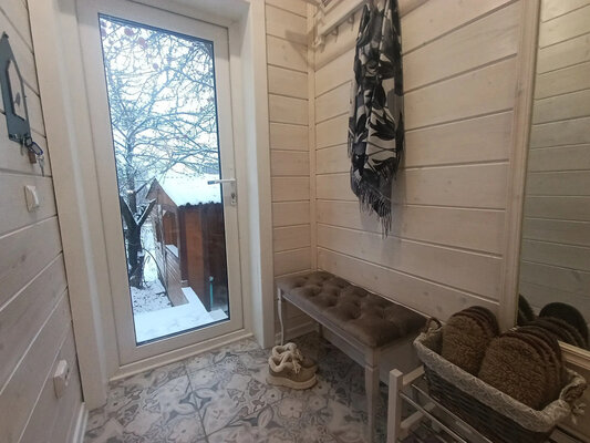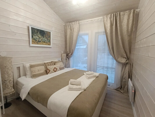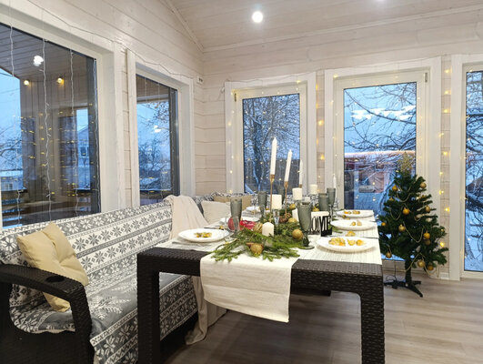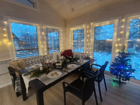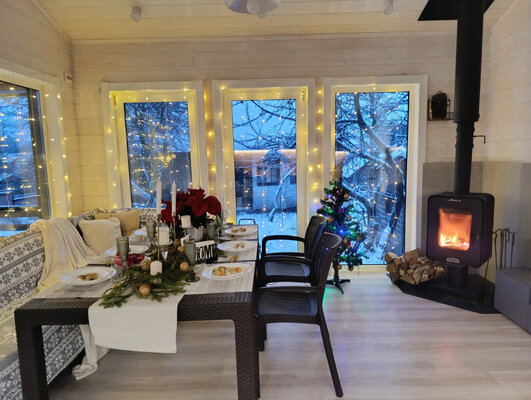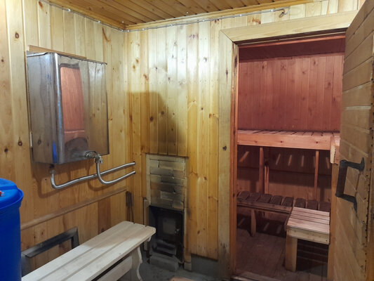 Насладитесь свежим воздухом на террасе размером 3х4 метра, расположенной под общей крышей дома. Отдельно стоящая баня доступна за дополнительную плату, при предварительном бронировании.