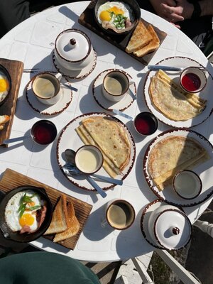 Кафе «Veranda» предлагает уютную атмосферу для спокойного семейного времяпровождения в любое время и погоду. Гостям доступны свежие блины с ароматным кофе, сытные завтраки и изысканные блюда, такие как яичница с беконом, сырники и клуб-сэндвичи, а также разнообразные закуски и салаты, которые удовлетворят любые гастрономические предпочтения.
