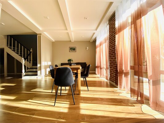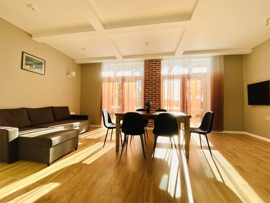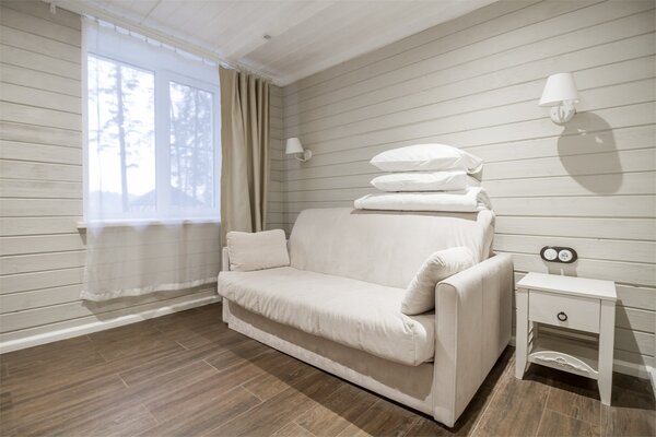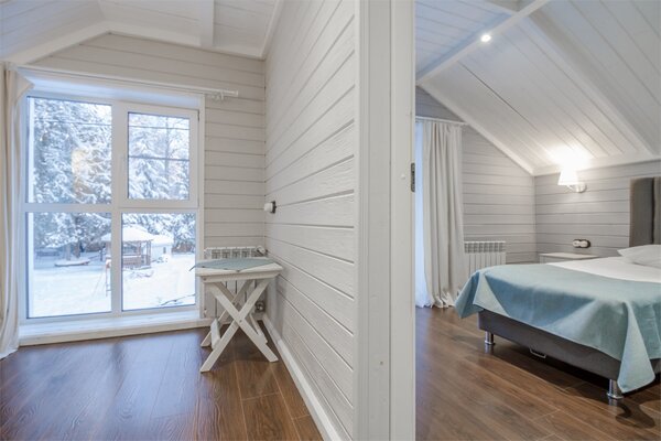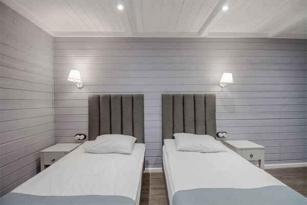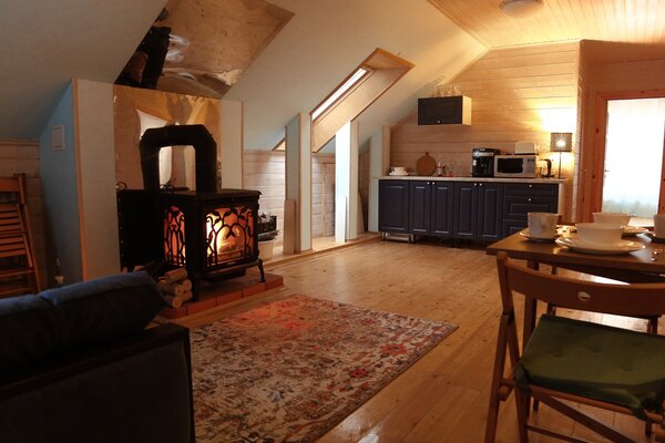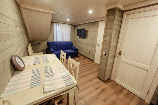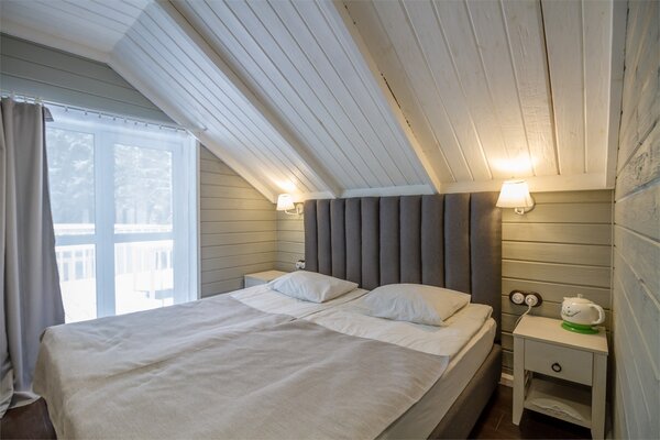 К вашим услугам просторные коттеджи, стильные апартаменты и уютные номера, каждый из которых обладает уникальной атмосферой и продуманным интерьером. Выбирайте по вкусу: от двухэтажных домов с большими гостиными и каминами до таунхаусов с террасами и великолепным видом на реку Оредеж. Для ценителей приватности предусмотрены собственные кухни и зоны отдыха, а в некоторых домах есть даже пианино для творческих вечеров.