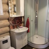 На территории много сосен, отличная мангальная зона, есть беседка со столиком, большая парковка, у нас было 3 авто, комнаты приятные, уютные, с балконом, гостиная большая уютная, ёлочка порадовала и большая плазма, в общем рекомендуем всем. Думаю, что приедем ещё туда.