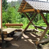 - столики, лавочки, кресла на лоне природы под кроной вековых сосен.