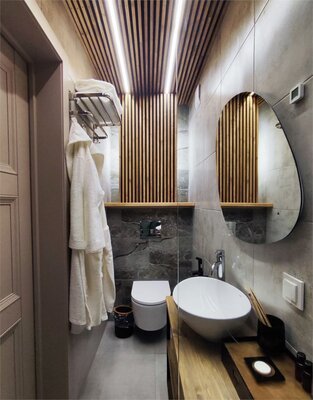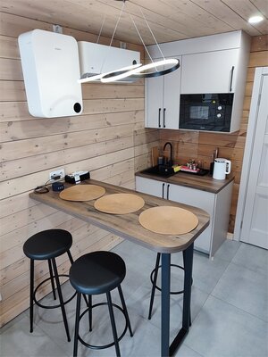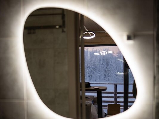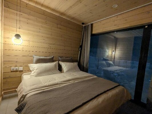 Баня с панорамным окном и прекрасным видом на горнолыжный склон. Печь с закрытой каменкой. Эфирные масла, простыни и полотенца для вас. Вкусный чай и приятные комплементы от «Высоты 171».