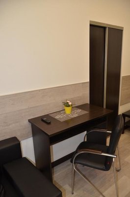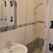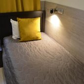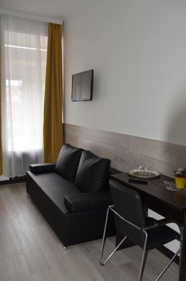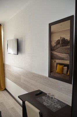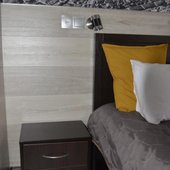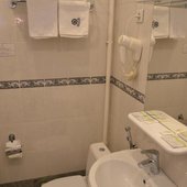 Комфортабельные номера выполнены в классических светло-серых и бежевых тонах. В ванной комнате предоставляется набор полотенец, косметические принадлежности, установлен душ, туалет и раковина.