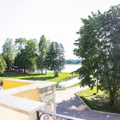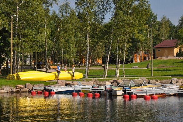 необходимо добраться до лодочной станции в Приозерске. Далее на пароходе по оз. Вуокса до базы отдыха (время в пути 30-40 мин.).