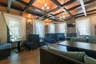 На территории есть панорамный ресторан, русская баня, 6 гриль-домиков, детский городок, футбольное поле и парковка на 80 автомобилей.