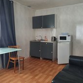 Мини-кухня (без плиты), холодильник с микроволновкой.