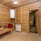 Есть сауна, 2 спальни, душ, санузел и телевизор.