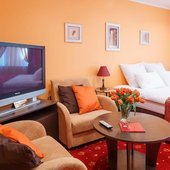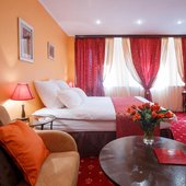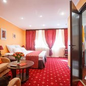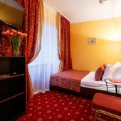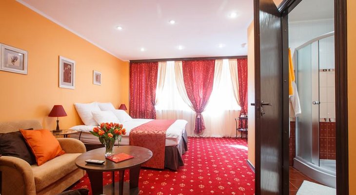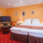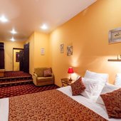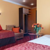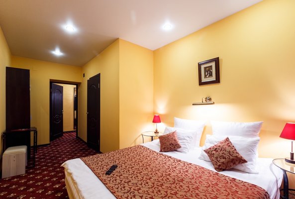К услугам гостей отеля просторные номера, которые оснащены всем самым необходимым: просторная кровать, современная ванная комната со всеми туалетно-косметическими принадлежностями.