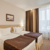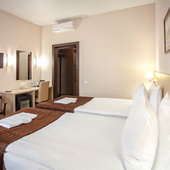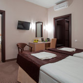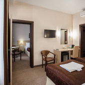 Четырехместный (Двухкомнатный номер объединенный межкомнатной дверью, с двумя односпальными и одной двуспальной кроватью)