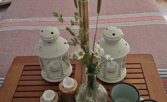 В ста метрах от шатров расположен дом, где гости могут подключиться к домашнему WiFi, воспользоваться холодильником, розетками и чайником.