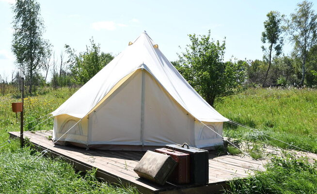 Добраться до шатров можно только на автомобиле. Для этого необходимо проложить маршрут до Полибино и затем следовать указаниям навигатора до глемпинга «FamilyGlamp Куликово поле».